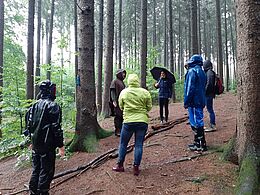 Trotz des strömenden Regens haben sich alle auf Erfahrungssuche in den Wald begeben und am Ende um so mehr die Wärme des Feuers aus der Feuerschale genossen.