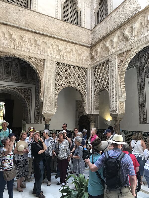 Wir besichtigten die Königskapelle in Granada und die „Karawanserei“. In Sevilla erwartete uns u.a. ein Spaziergang durch die Straßen des alten Judenviertels, das heute „Santa Cruz“ genannt wird, und die Besichtigung der Kathedrale „Santa Maria de la Sede“ und die „Reales Alcázares“, beide Weltkulturerbe seit 1987.