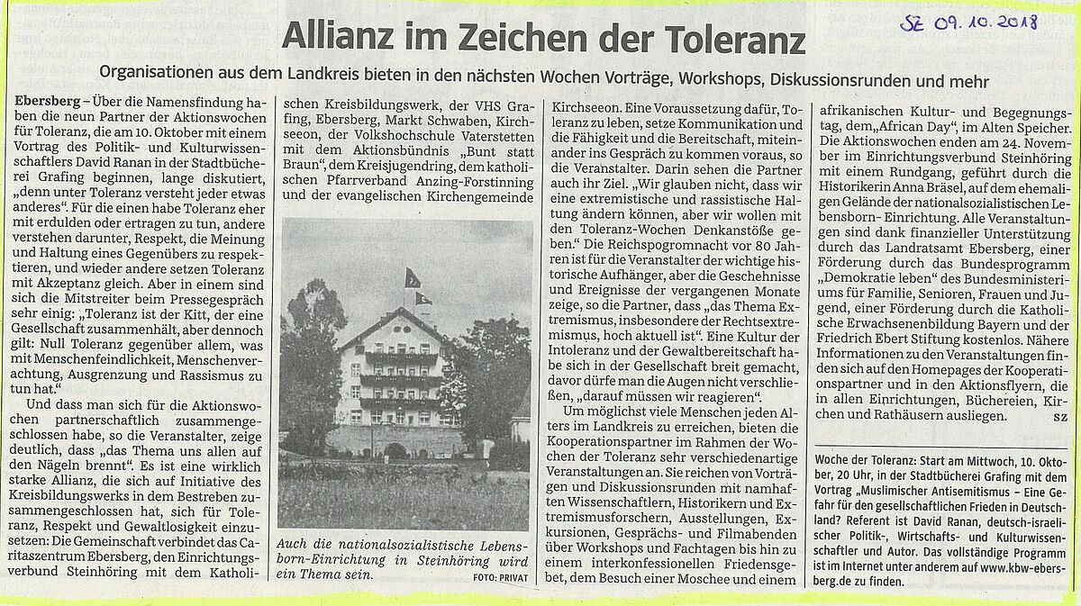 Wir freuen uns, auch im Oktober und November 2020 wieder die Wochen der Toleranz im Landkreis vom Kath. Kreisbildungswerk Ebersberg e.V. und zahlreichen Kooperationspartnern anbieten zu dürfen.