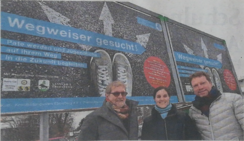 Die Suche nach dem richtigen Weg ist für viele Jugendliche nur mit kompetenten und engagierten Begleiter*innen zu bewältigen – unseren Pat*innen. Wenn Jugendliche möchten, können sie sich ab der 7. Mittelschulklasse der Schulen in Ebersberg, Grafing, Kirchseeon, Aßling und Glonn an ihre Klassenleiter*in oder die Sozialarbeiter*in an Schulen wenden. Pat*innen unterstützen bei der Bewältigung des Schulalltags, helfen, die Stärken herauszufinden und sind Freund*in und Ansprechpartner*in in der kritischen Übergangsphase „Schule - Beruf“.