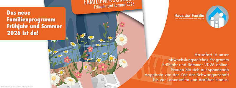 Unser neues Familienprogramm für das Frühjahr und den Sommer 2026 ist da! Von der Schwangerschaft bis zur Lebensmitte und darüber hinaus – wir bieten Ihnen ein abwechslungsreiches und vielfältiges Angebot für jede Lebensphase und möchten Sie in allen Bereichen des Lebens unterstützen.